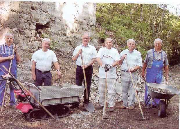 Nach gründlichen Beratungen mit dem Eigentümer, dem Denkmalamt, mit Burgenspezialisten und anderen Fachleuten ging man an die Arbeit. Unaufschiebbare Sicherungsmaßnahmen an stark einsturzgefährdeter Bauteilen wurden unter Mithilfe zahlreicher freiwilliger Helfer aus Empfingen und Fischingen durchgeführt. Auf dem Gelände wurden marode Bäume gerodet und entfernt. Gestrüpp wurde verbrannt, Müllhaufen entsorgt und Steine sortiert.